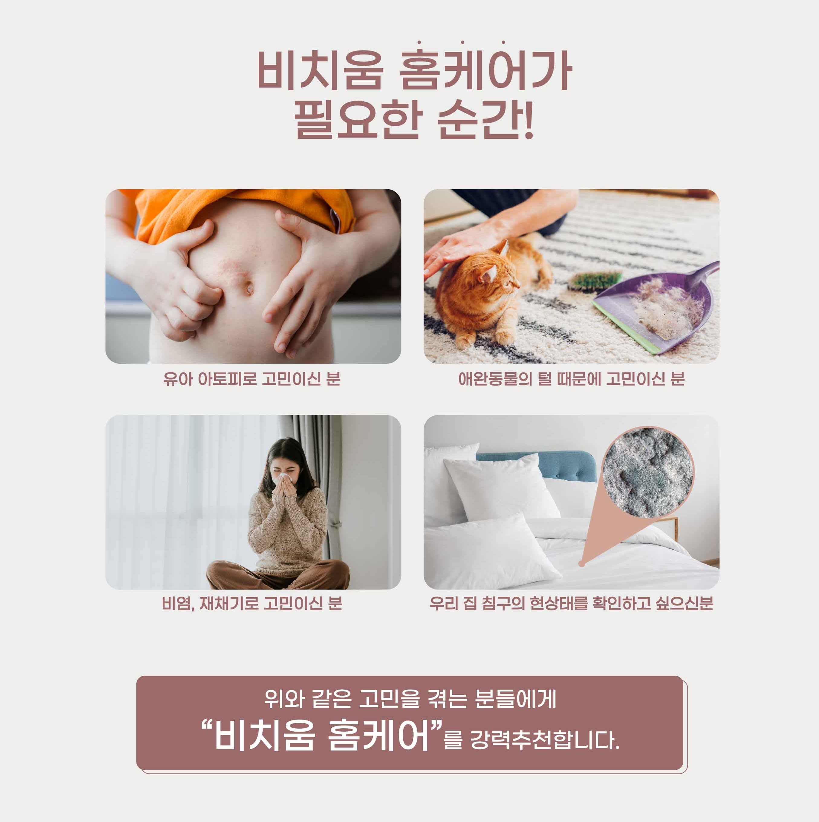 (주)비치움은 2014년 10월 법인설립을 시작으로 고객들의 쾌적한 라이프 스타일을 위한 토탈 홈케어솔루션을 위한 사업을 하고 있습니다.
